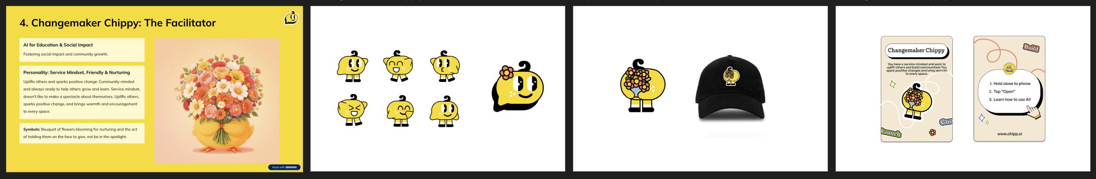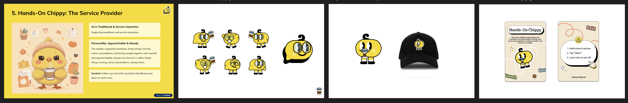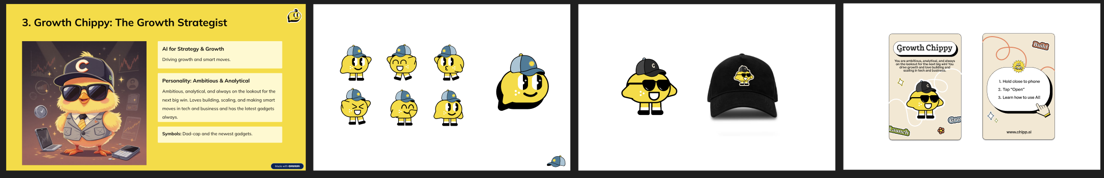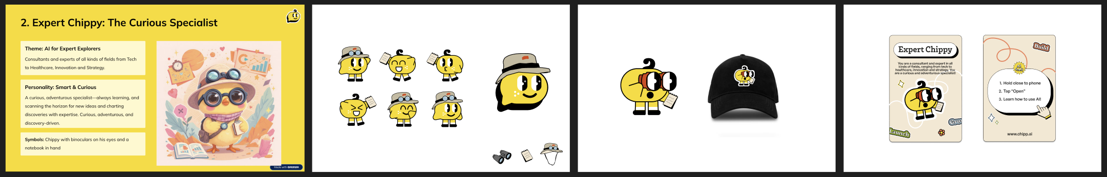 For ChippCon, I was given an initial character concept and a short description of each “Chipp-sona.” From there, I translated those rough ideas into clean, vector-based mascot variations that matched ChippAI’s visual style. I explored different poses, expressions, and accessories to capture each persona’s personality, then refined them into a consistent, reusable set of character assets that could scale across merch, signage, and digital touchpoints.